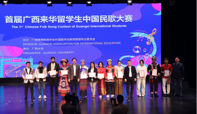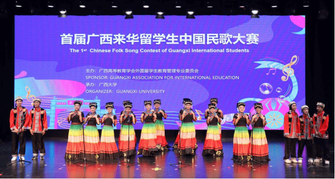 此次大赛由广西高等教育学会外国留学生教育专业委员会主办,广西大学承办,全区共70多所高校留学生参加。通过对中国民歌的品味和演绎,留学生们在感受中国少数民族热情奔放的性格,对美好山水的热爱,以及对幸福生活质朴向往的同时,也让他们对各自国家的民族文化产生了共情,为中外文化互融架起沟通的桥梁。