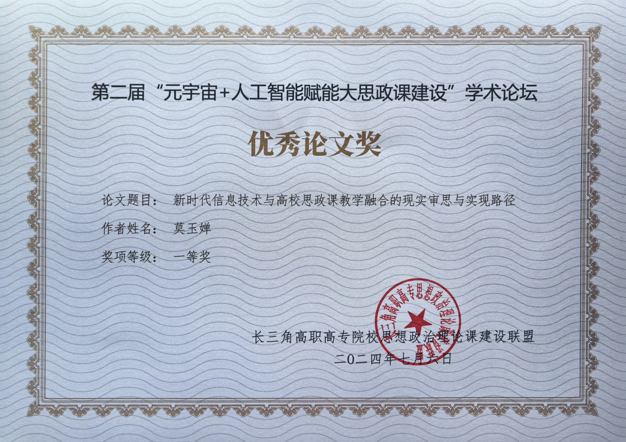 据悉,本次征文活动由全国高职高专院校思政课建设联盟主办,上海出版印刷高等专科学校承办,长三角高职高专院校思政课建设联盟、上海高职高专院校思政课建设联盟、上海高校思政课名师工作室——马前锋工作室协办,旨在学习贯彻习近平总书记关于学校思政课建设重要指示精神,推动思想政治工作传统优势与信息技术深度融合,借助信息领域的新技术、新思维与新方法推动高校思政课改革创新。2024年4月至6月期间,该活动面向全国高校思政课教师征集优秀论文,20多所高校提交了相关论文,共评出论文特等奖2篇、一等奖8篇、二等奖8篇、三等奖13篇。