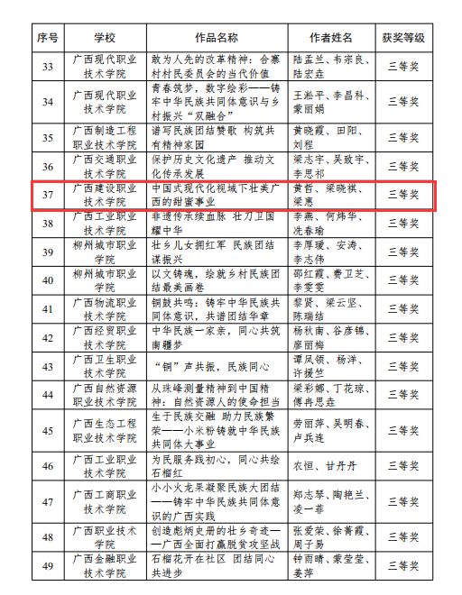 此次评选活动是深入贯彻落实习近平总书记关于思政课建设的重要指示精神,充分运用社会大课堂提升思政课的针对性、时效性,持续增强大学生学习思政课的积极性和获得感的重要举措。全区高校共认定“大思政课”教学改革优秀工作案例一等奖6篇、二等奖11篇、三等奖17篇;“大思政课”示范课堂高职高专组一等奖10堂、二等奖19堂、三等奖29堂。