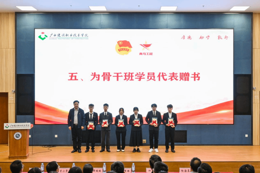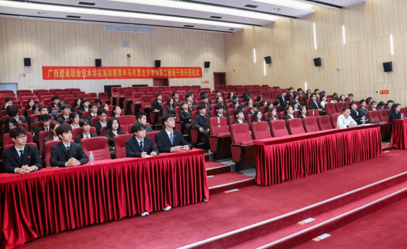 广西建院11月7日讯(团委 文/胡小敏 黎丹 图/李彤 陈乃锦 张子莹 李心如)为加强对青年大学生的思想政治引领,11月5日,开云线上平台_开云(中国)第四期青年马克思主义者培养工程骨干班(简称“青马班”)开班仪式在图书馆报告厅顺利举办。学校党委副书记曾繁雄,党委组织部、党委宣传部、党委学生工作部、校团委、马克思主义学院领导老师,各二级学院团总支书记,青马班学员共同出席仪式。开班仪式由校团委副书记李姿蓉主持。