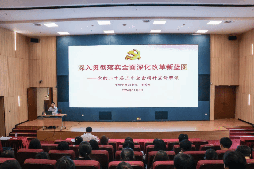 开班仪式后,曾繁雄副书记以《深入贯彻落实全面深化改革新蓝图——党的二十届三中全会精神宣讲解读》为题,为“青马班”全体学员上了精彩的第一课。曾繁雄副书记从党的二十届三中全会简介、深入领会习近平总书记在党的二十届三中全会上的重要讲话精神、准确理解《决定》里进一步全面深化改革重大举措以及全力抓好全会精神贯彻落实四个方面,向学员们深刻解读了全会精神。