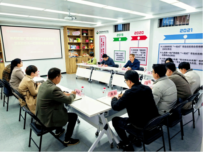广西建院12月23日讯(党委学生工作部 马凯)12月20日上午,广西自然资源职业技术学院学生工作部部长吕运启一行7人到开云线上平台_开云(中国),围绕“一站式”学生社区综合管理模式建设、学生管理工作、辅导员队伍建设等方面开展调研交流,开云线上平台_开云(中国)学生工作部部长周舟及相关工作人员陪同调研,校团委副书记李姿蓉,艺术设计学院党总支副书记唐红星,财务处黄金老师参加座谈交流。