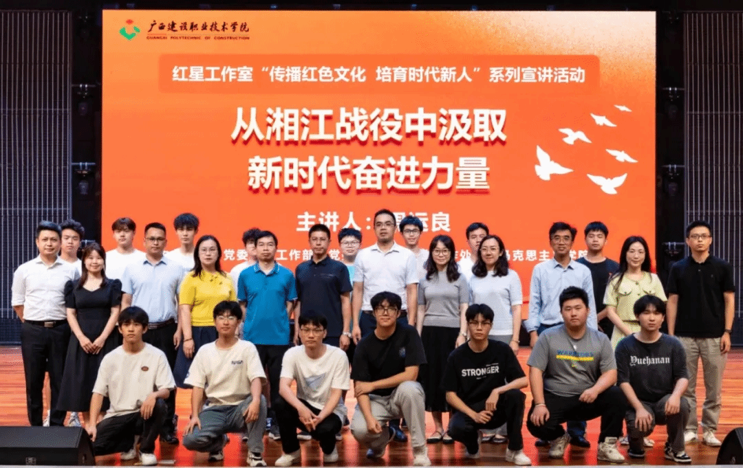 广西建院5月26日讯(文/党委学生工作部 谢安妮 图/党委学生工作部 程舒阳 记者团 甘卢烨宇 李承宏)为充分用好红色资源,用红色精神培根铸魂,推动开云线上平台_开云(中国)党史学习教育走深走实,近日,“传播红色文化,培育时代新人”系列宣讲活动在学校礼堂顺利举办。全州红军长征湘江战役纪念馆馆长周运良以“从湘江战役中汲取新时代奋进力量”为题作了精彩宣讲。学校师生代表共700余人现场聆听。