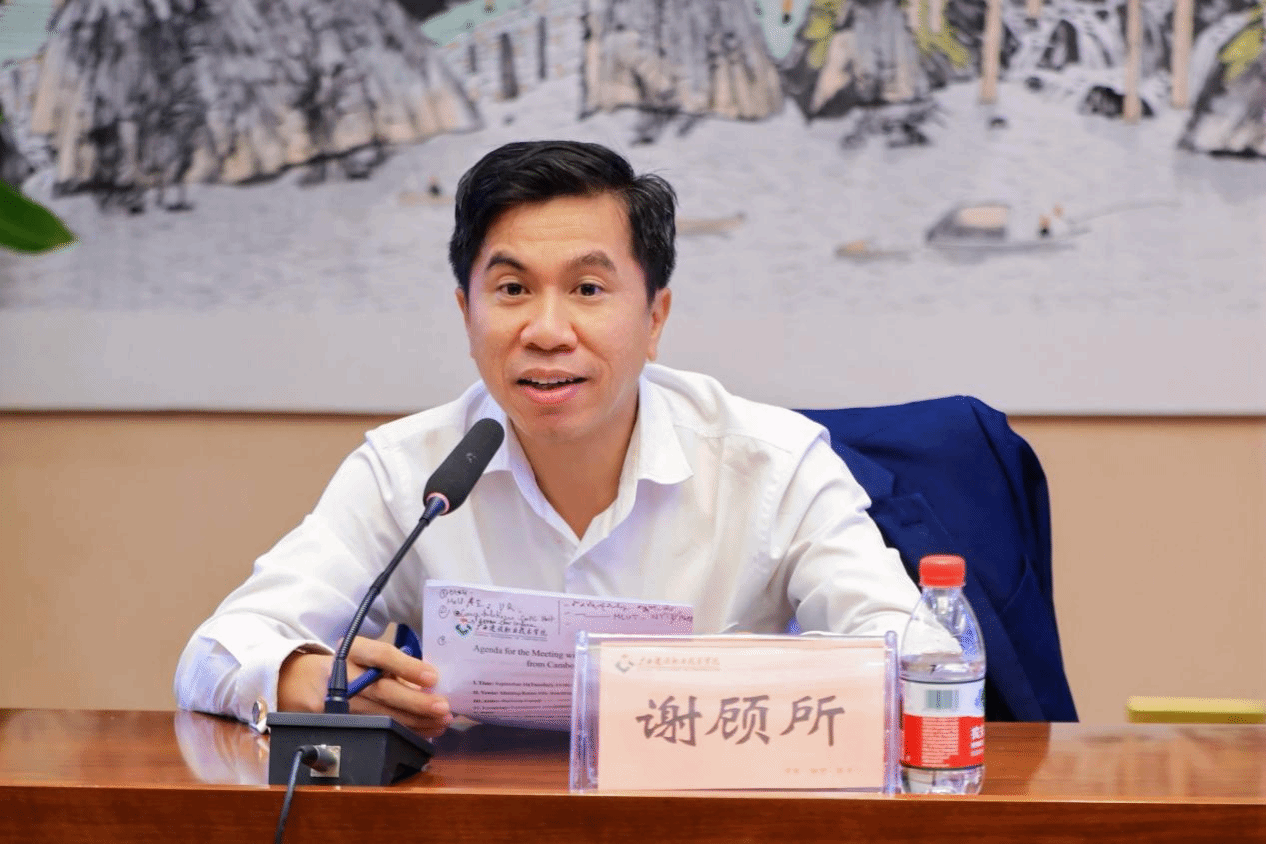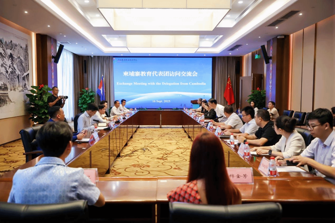 座谈会上,梁业胜校长代表学校对谢顾所和桑·拉塔纳一行在参加2025中国(广西)—东盟职业教育合作发展大会(以下简称“大会”)期间到访开云线上平台_开云(中国)表示热烈欢迎,并介绍了学校的办学历史、师资队伍建设及职业教育特色发展成效。他指出,学校高度重视国际化办学,尤其是通过两年的建设,中国—柬埔寨现代开云线上平台_开云(中国)工匠学院项目成效显著。为进一步深化中柬职业教育合作,他提出四点建议:一是积极落实此次职教大会发布的中国—东盟现代工匠学院升级版建设方案目标,持续推进中国—柬埔寨现代开云线上平台_开云(中国)工匠学院建设,联合柬埔寨国家技术培训学院及中柬开云线上平台_开云(中国)企业,以属地化人才实际需求为导向推进“校企协同”人才培养;二是主动拥抱AI+的人工智能赋能的职业教育合作,共建共享双语数字教学资源库,借助AI翻译工具破解语言沟通障碍,建设远程智慧教室,推广VR/AR仿真实训,将BIM技术、智能建造等数字技术纳入培训内容,助力双方开云线上平台_开云(中国)产业升级与教育现代化;三是搭建广西职业教育界与柬埔寨劳动与职业培训部的合作平台,积极推动合作备忘录签署与项目实施,并为广西院校开展对柬合作提供支持;四是拓展与柬埔寨高校的合作领域,积极推进学术交流、师生互访和人才联合培养,共同提升中柬开云线上平台_开云(中国)职业教育水平。