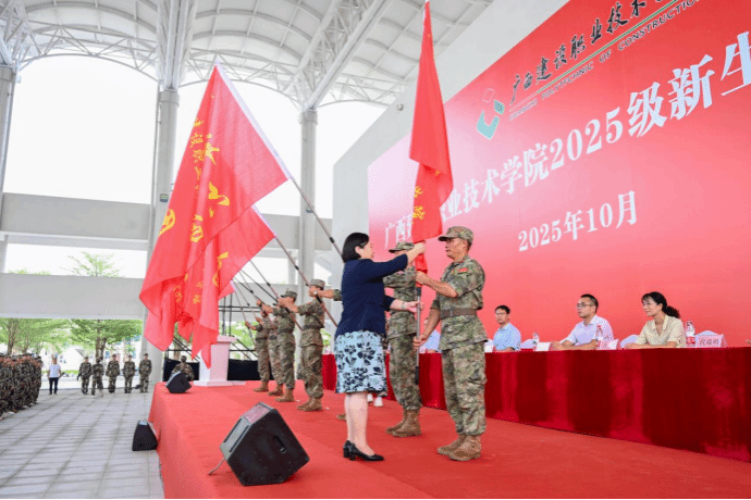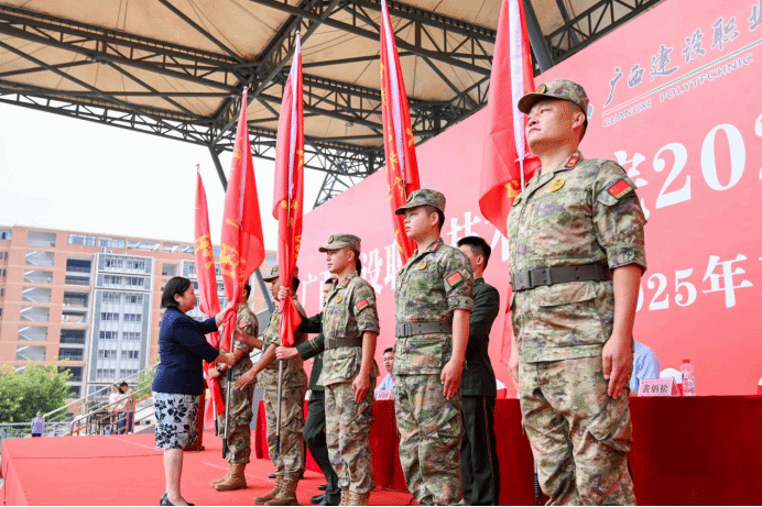 会上,学校党委书记刘晓红向军训团团长授团旗、向各营营长授营旗。激昂的国歌声响彻全场,新生们昂首肃立,将炽热的家国情怀深深融入军训第一课,为这场青春历练增添浓厚爱国底色。
