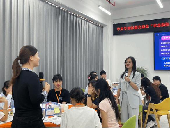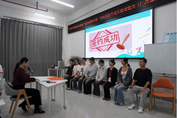 为实现“训有所获、学以致用”,广西建院基地着力打造多维度实战训练平台。在技能提升层面,提供“一对一”AI简历诊断优化与模拟面试等定制化服务,助力学员精准匹配岗位需求;开设AI信息处理课程,提升学员信息筛选与风险防范能力。在面试能力培养上,邀请企业人力资源总监亲临授课,通过“三版自我介绍迭代+多轮模拟面试+精准点评”的闭环训练,系统提升学员面试竞争力。培训还设置“国王与天使”互动环节,营造互助共进的集体氛围,有效提升学员的团队协作与沟通能力。