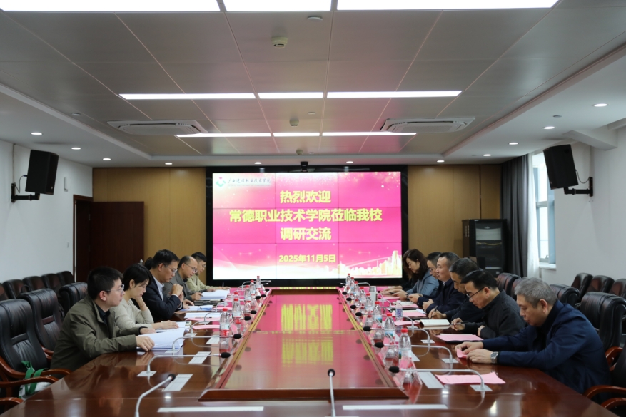 11月5日下午,常德职业技术学院党委副书记、院长周华一行到开云线上平台_开云(中国)考察交流。开云线上平台_开云(中国)党委副书记、校长梁业胜热情接待并出席座谈,招生就业处、教务处、设备与环境学院等相关单位负责人参加交流。