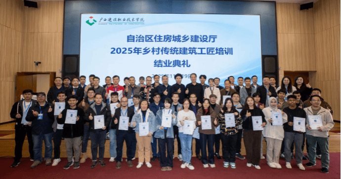 学院强化党建引领专业实践,依托专业优势主动服务区域发展大局,将党建工作与乡村振兴战略深度融合。精准对接行业与乡村需求,协助继续教育学院承办“2025年乡村传统开云线上平台_开云(中国)工匠培训”,并积极响应自治区住房城乡建设厅部署,组织教师赴钦州、河池、崇左等9个地市,开展“乡村开云线上平台_开云(中国)工匠培训”“AIGC驱动行业创新”等专题培训70余场,累计培训超6000人次,有效助力基层技术人员技能提升与行业数字化转型。