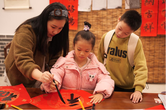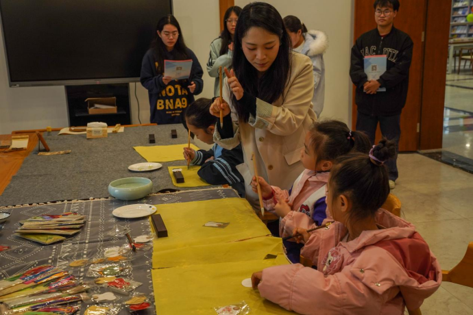 揭牌当日,中心精心策划的开放日活动亮点纷呈。孩子们在“书春雅集”上提笔写福,在“文脉游园”中闯关打卡,还可以观看亲子电影,更能在“图书馆探秘之旅”中畅游儿童书库。活动现场,128张崭新的“小读者借书证”被免费发放到孩子们手中。一位刚拿到借书证的小朋友兴奋地说:“这里的书好多呀,我每本都想借!以后周末我都要来!”