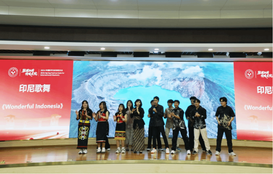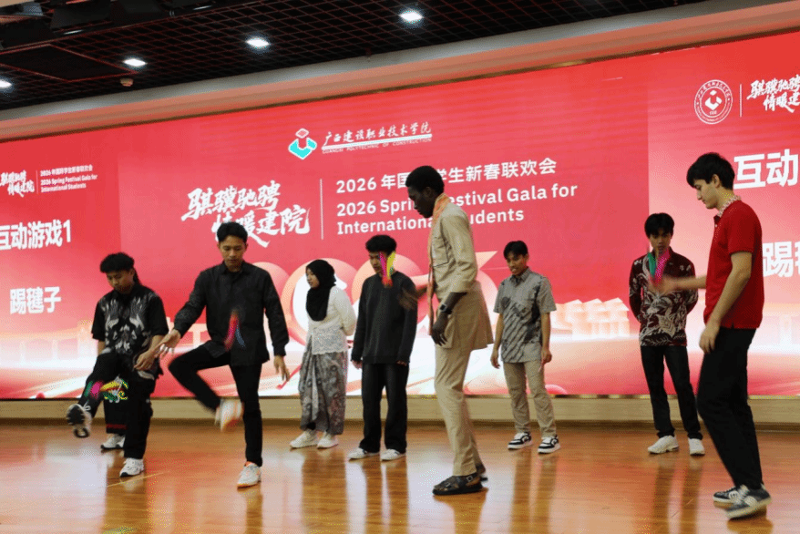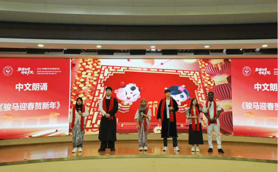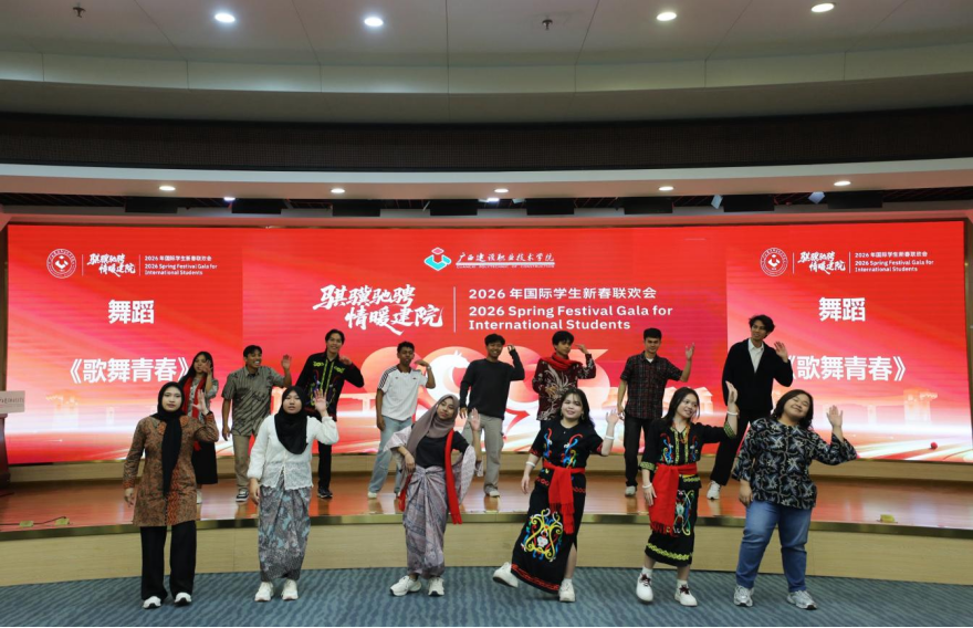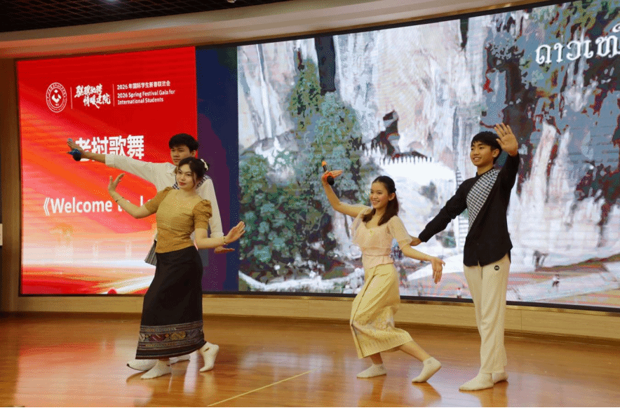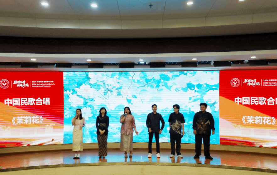 联欢会上,来自老挝的李美西和达万同学以清晰流利的中文担任主持,充分展现了学校国际中文教学的扎实成效;印度尼西亚的传统舞蹈充满异域风情,老挝学生带来的歌舞抒情优美,多国留学生用中文朗诵《骏马迎春贺新年》,年味十足,共同呈现出多元文化交融的青春风采。学校国际学生合唱团分别用汉语和多种外语演绎的中国民歌《茉莉花》,更是赢得阵阵掌声。该作品曾荣获2025年广西来华留学生中国民歌大赛二等奖,中西交融、古今对话,成为文明互鉴的生动诠释。