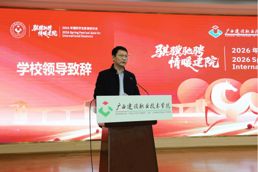 梁业胜校长在致辞中向全体国际学生致以新春祝福。他表示,学校因留学生的到来而更具国际色彩,也因留学生的奋斗而充满活力。他勉励同学们珍惜在华学习时光,深入体会中国的发展理念与工匠精神,将所学知识与结下的友谊带回自己的祖国,成为促进文化交流、增进人民理解的友好使者。