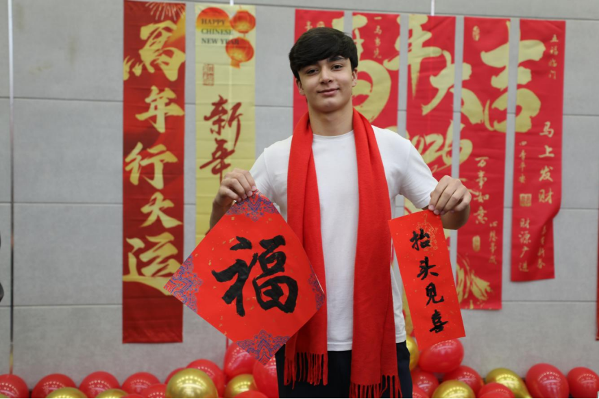 联欢会开始前,现场设置了体验中国传统文化的书写毛笔字和剪纸环节。留学生们在老师指导下提笔挥毫、巧手裁红,亲身感受中国年的独特韵味,为活动增添了浓厚的文化氛围。