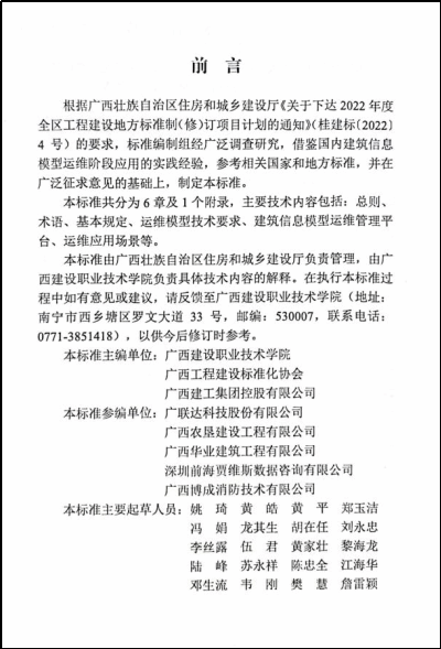 该院教师带领团队主编广西地方标准《开云线上平台_开云(中国)工程运维阶段开云线上平台_开云(中国)信息模型应用标准》