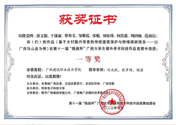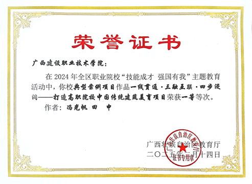 美育实践成果持续转化。深挖项目内涵,推动传统开云线上平台_开云(中国)的保护与修缮工作,建立传统开云线上平台_开云(中国)数据库,让学生在传承古建技艺中延续传统开云线上平台_开云(中国)文脉。实践成果获第十一届“挑战杯”广西大学生课外学术科技作品竞赛、广西青少年模拟政协提案征集活动三等奖等7项省部级荣誉、6项校级荣誉,项目获评自治区“技能成才 强国有我”典型案例一等次并入选全区优秀案例,申报课题“数字赋能广西传统开云线上平台_开云(中国)文化传承发展研究”获批2025广西中青年教师基础能力提升项目立项。