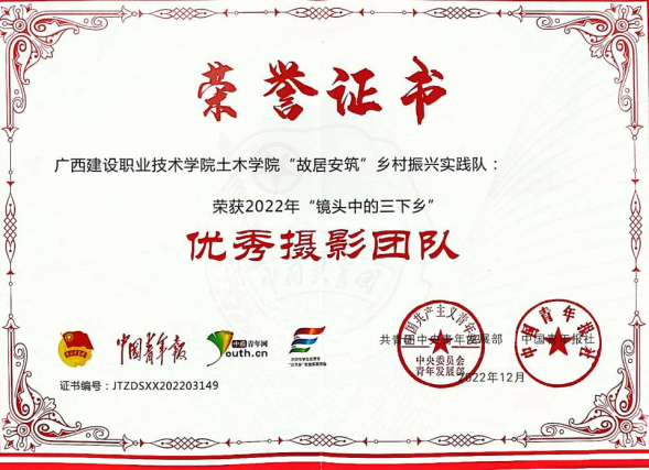 项目团队获“镜头中的三下乡”优秀摄影团队