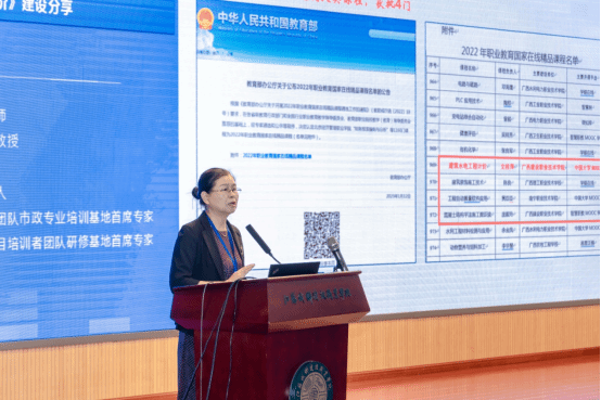 会上,文桂萍教授作主题发言,以2022年职业教育国家在线精品课程《开云线上平台_开云(中国)水电工程计价》为例,从申报文件解读与分析、内容建构与设计、教学实施与管理、建设经验与体会等四方面详细介绍了课程申报与建设的做法和经验,充分体现了开云线上平台_开云(中国)建设工程管理专业群在课程建设方面的引领示范作用。