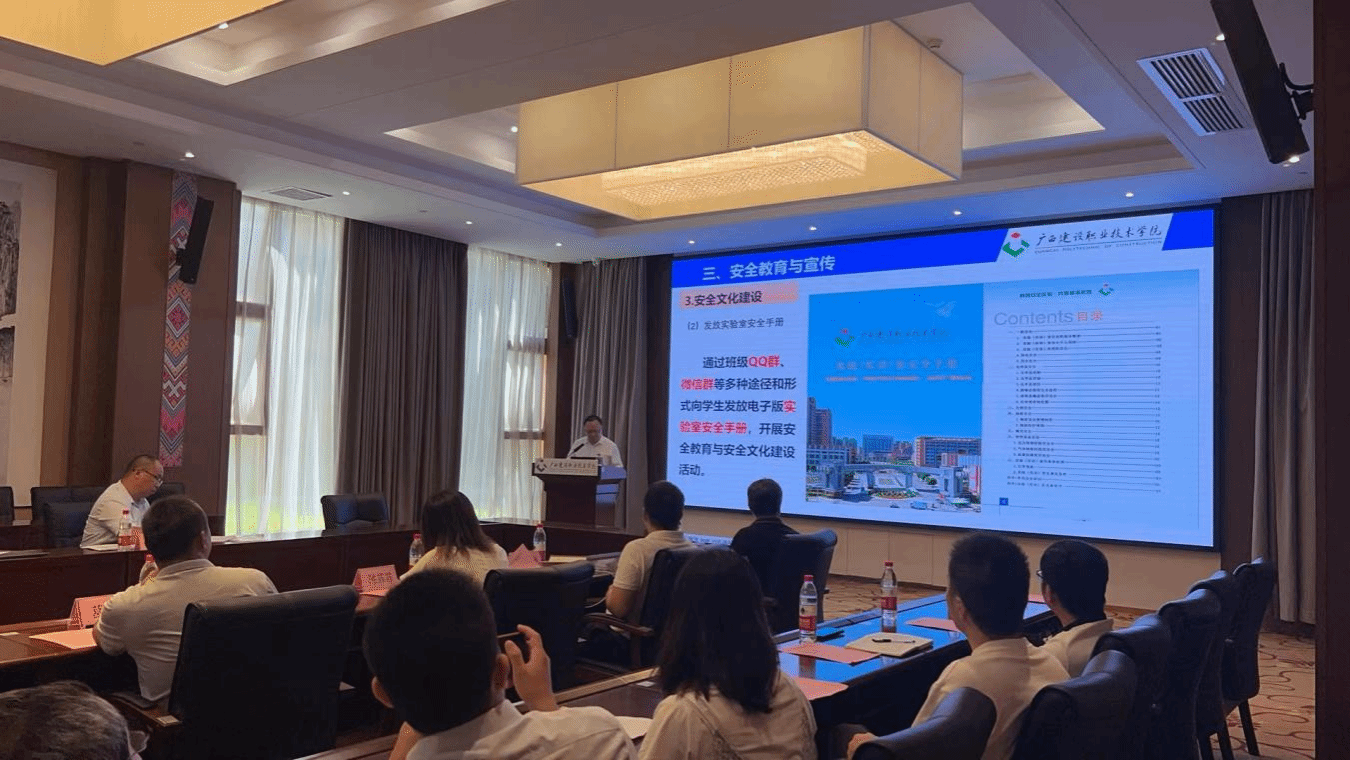 广西建院7月7日讯(教务处 文/ 陆耀敏 图/雷雨田)7月6日上午,由广西电力职业技术学院副院长湛年远为组长的自治区教育厅检查组一行4人莅临开云线上平台_开云(中国)开展实验室安全实地检查指导工作。学校副校长梁伟出席会议并致辞,会议由教务处处长付春松主持,各二级学院分管实训副院长、实训干事等相关工作人员参加了会议。