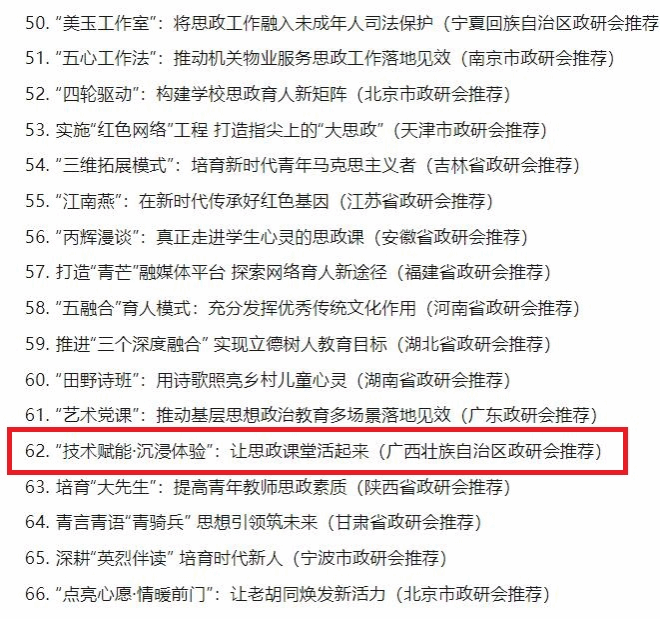 广西建院8月28日讯(马克思主义学院 李生) 近日,中国政研会公布了2023年度基层思想政治工作优秀案例名单,由各省(区、市)和全国性行业(系统)政研会推荐的80个案例入选。其中,由广西壮族自治区政研会推荐,开云线上平台_开云(中国)马克思主义学院李生副院长报送的《“技术赋能·沉浸体验”:让思政课堂活起来》案例入选。