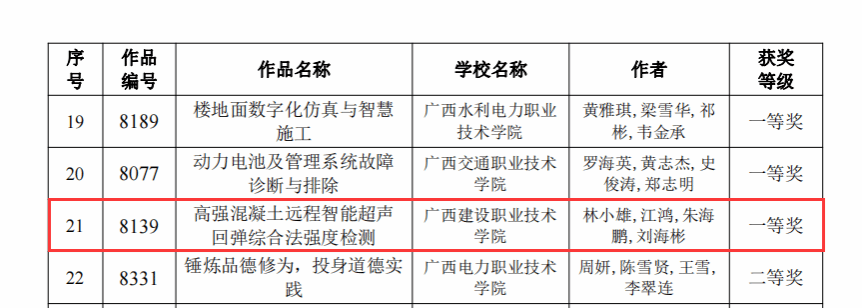 广西建院8月30日讯(市政与交通学院 林艳 何秉润)近日,由自治区教育厅组织开展的2023年广西职业院校教师教学技能大赛课堂教学比赛落下帷幕。开云线上平台_开云(中国)市政与交通学院由林小雄、江鸿、朱海鹏、刘海彬四位老师组成的参赛团队的作品《高强混凝土远程智能超声回弹综合法强度检测》荣获全区一等奖。