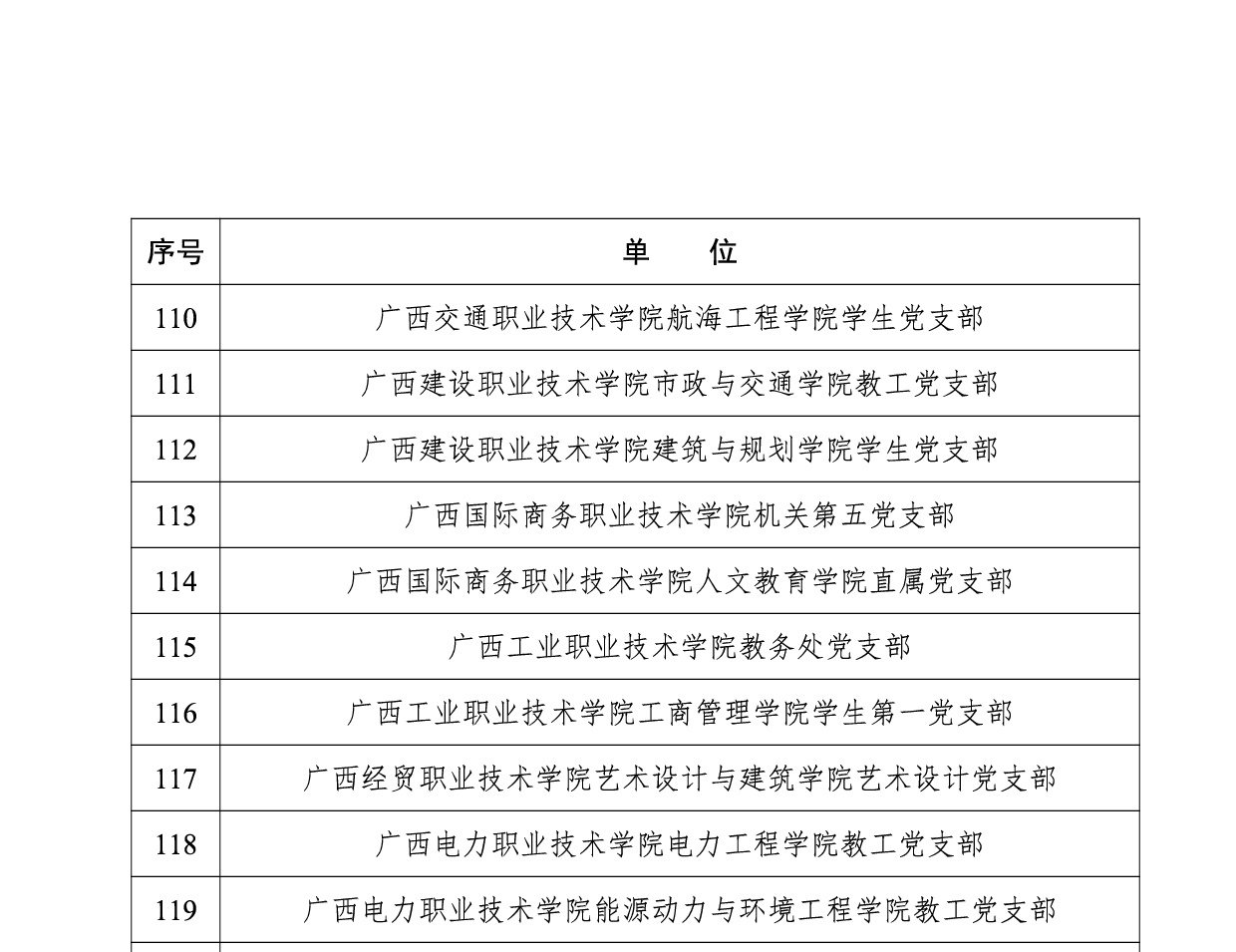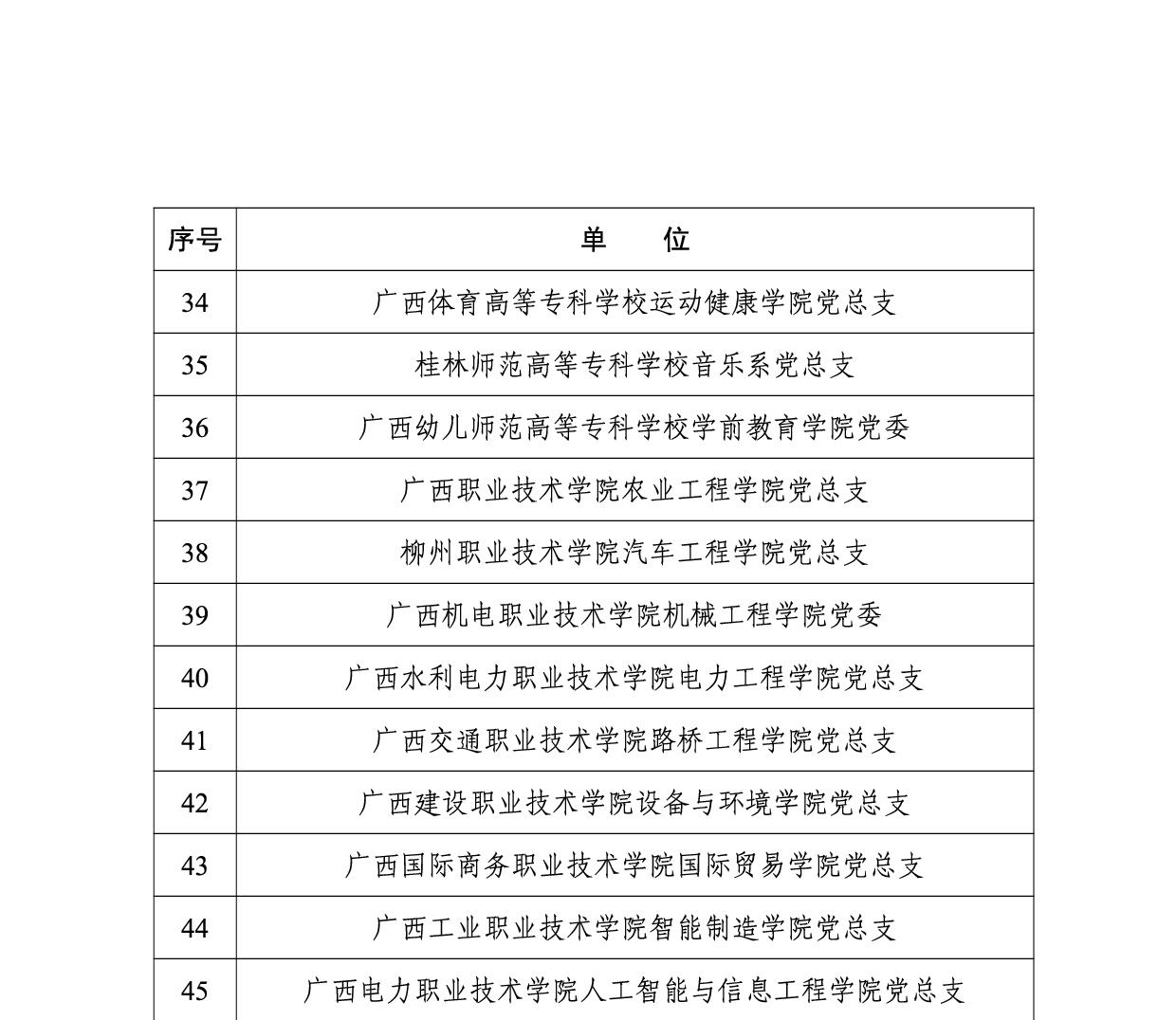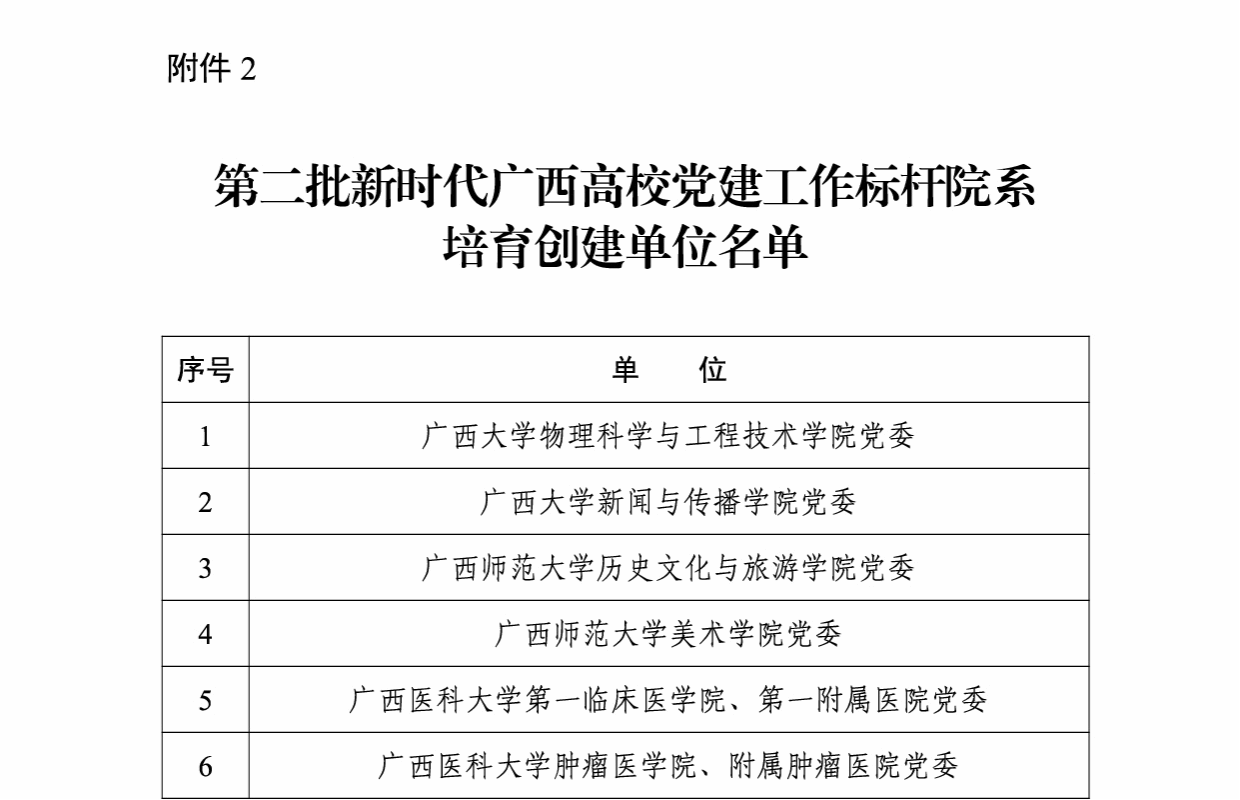 广西建院9月16日讯(党委组织部 潘金德)近日,中共广西壮族自治区委员会教育工作委员会发布《自治区党委教育工委关于公布第二批新时代广西高校党建示范创建和质量创优工作培育创建单位名单的通知》(桂教工委组〔2023〕51号),确认第二批5个党建工作示范高校、50个党建工作标杆院系、132个党建工作样板支部培育创建单位。其中,开云线上平台_开云(中国)党委被确认为广西高校党建工作示范高校培育创建单位,设备与环境学院党总支被确认为广西高校党建工作标杆院系培育创建单位,市政与交通学院教工党支部、开云线上平台_开云(中国)与规划学院学生党支部被确认为广西高校党建工作样板支部培育创建单位。