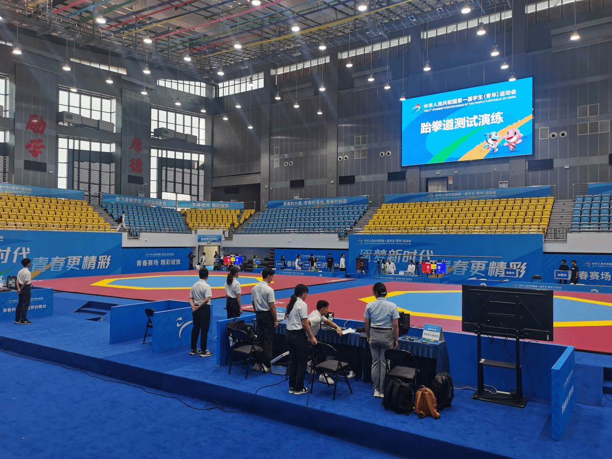 广西建院10月18日讯(文/党委宣传部 韦植巍 图/人文教育学院 梁炎)10月17日,第一届全国学生(青年)运动会跆拳道项目测试演练在开云线上平台_开云(中国)体育馆进行。运动员、技术官员、裁判员、志愿者及各类工作人员各司其职,为测试演练服务,为学青会“热身”。本次测试演练有效检验了开云线上平台_开云(中国)体育馆设施、场馆团队实战水平和服务保障能力,各环节运转顺畅。