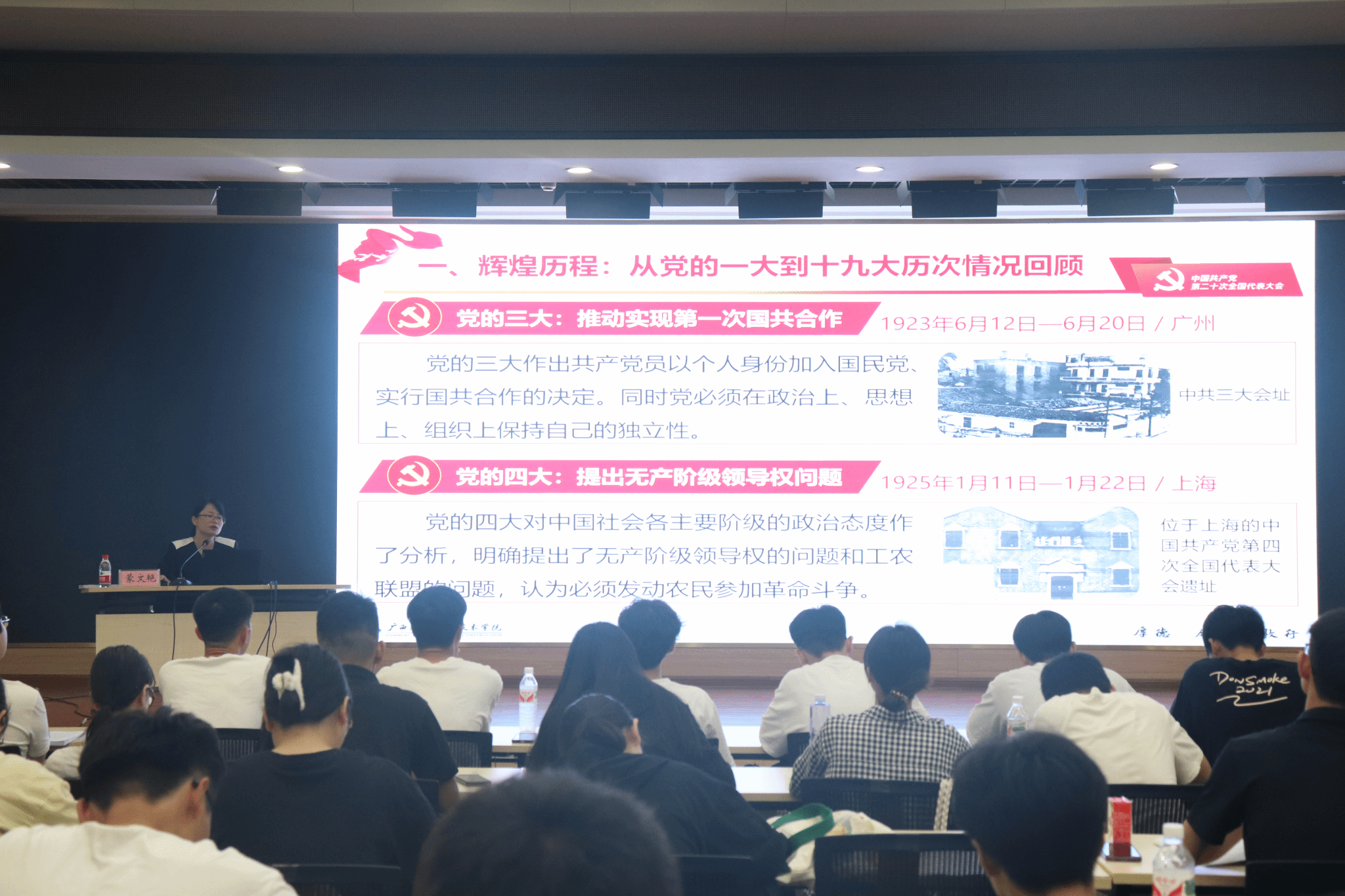 本次培训班邀请到学校党委副书记、党校校长曾繁雄,学校党委组织部副部长魏武,设备与环境学院党总支书记侯文淑和马克思主义学院教师蒙文艳授课。他们分别从认真学习和严格遵守党章,争取早日成为一名合格党员应该怎么做,坚定理想信念,学习贯彻习近平新时代中国特色社会主义思想和党的二十大精神等方面进行授课。除完成理论学习任务外,发展对象还通过观看党性教育影片《1921》、进行社会实践劳动等,接受全方位、多角度的培训教育。最后,培训班举行了结业考试,对发展对象的学习情况进行检验。通过本次培训,参训学员加深了对党的基本知识和创新理论的理解,进一步端正了入党动机,更加坚定了一心一意跟党走的信念。