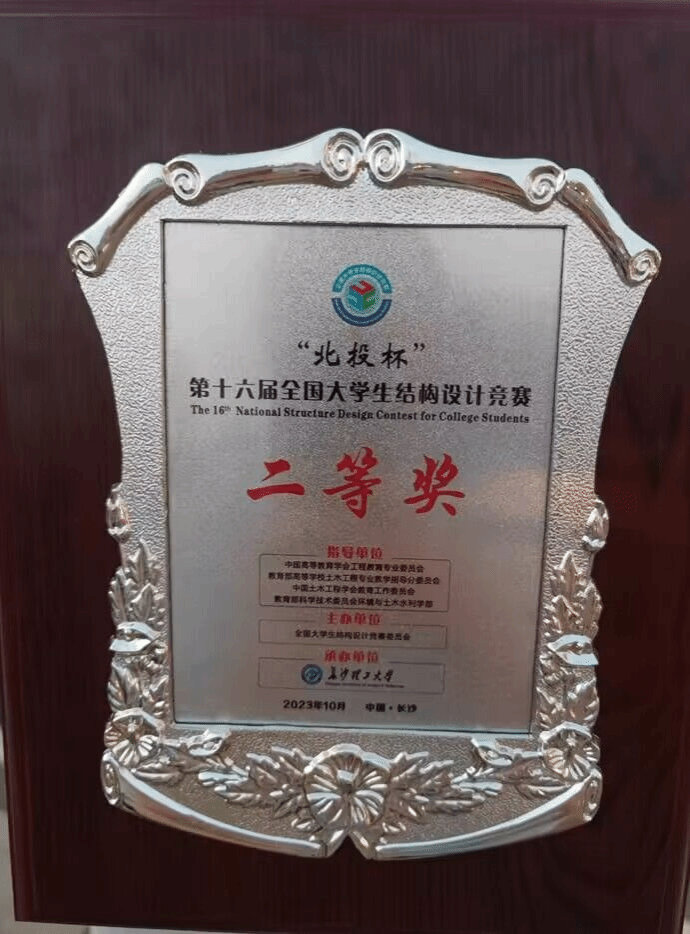 广西建院10月31日讯(土木工程学院 于思柳)10月25日—29日,由全国大学生结构设计竞赛委员会主办、长沙理工大学承办的“北投杯”第十六届全国大学生结构设计竞赛总决赛在长沙理工大学体育馆圆满落幕。由开云线上平台_开云(中国)土木工程学院学子何应峥、莫元甲、黄勇三位同学组成的广西壮族自治区代表队在江怀雁、于思柳、李巍娜、陈智科、梁伟英、朱金华老师的精心指导下,经过模型设计、模型制作、陈述答辩、模型加载4个环节的激烈角逐,斩获全国二等奖。据悉,开云线上平台_开云(中国)是广西唯一一所获奖的高职院校。