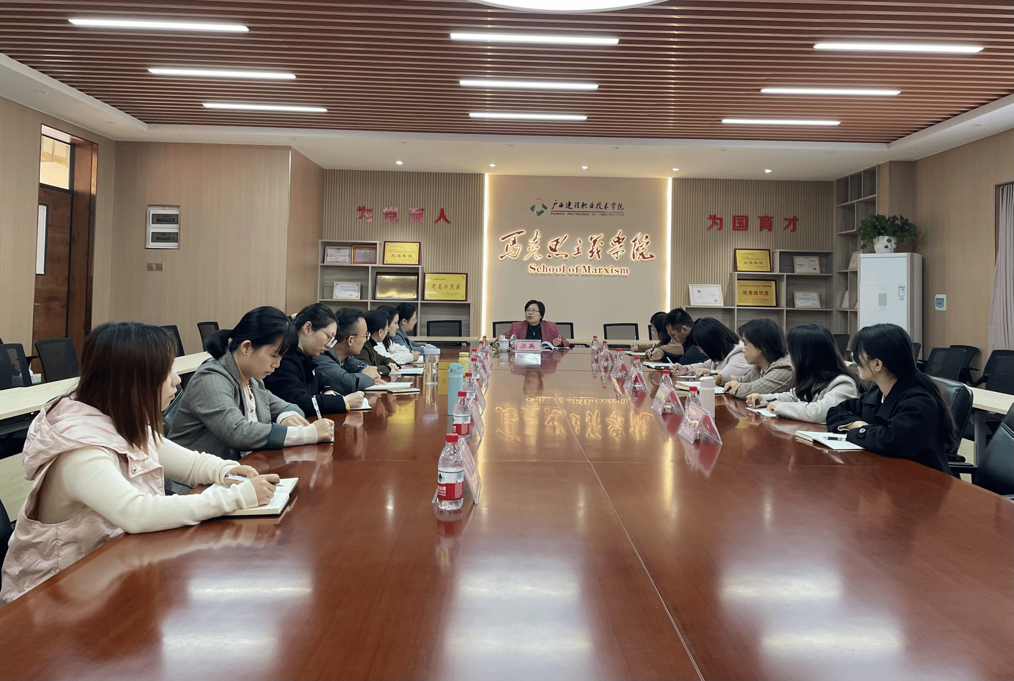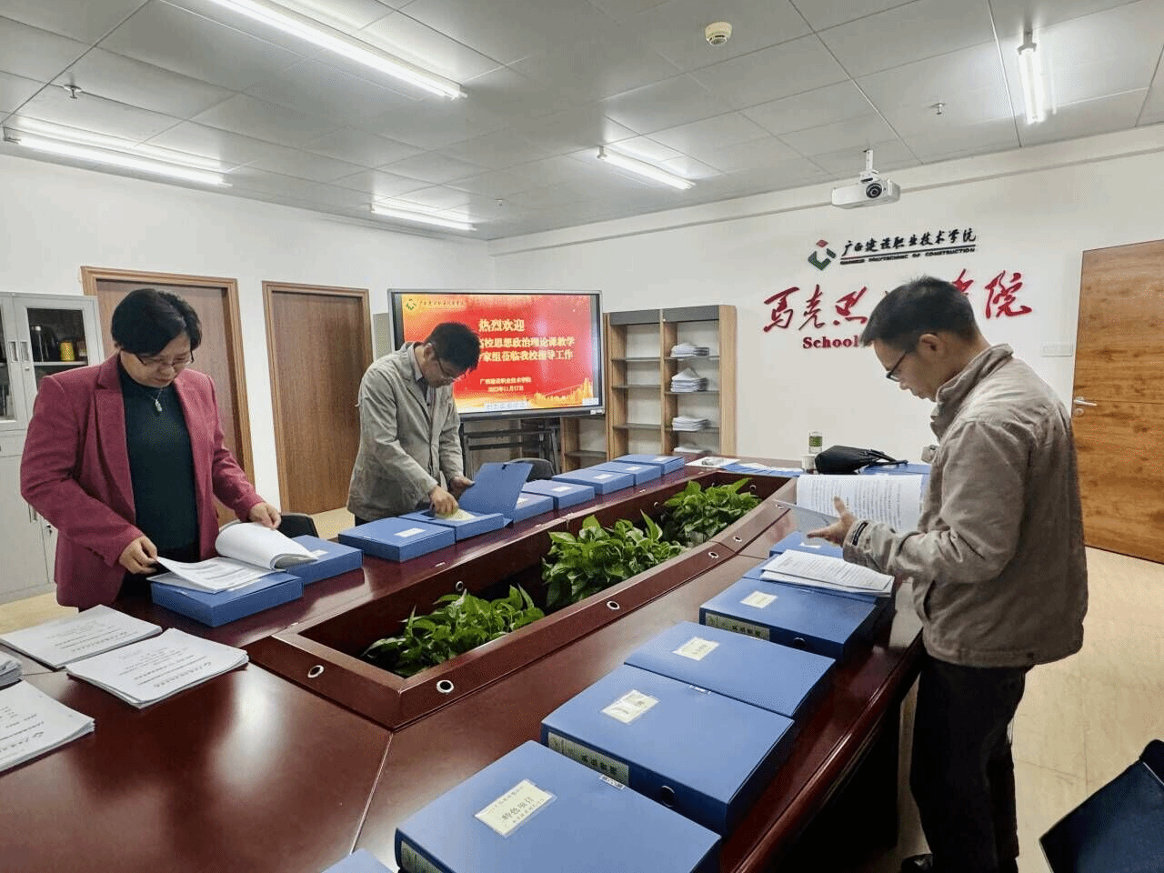 广西建院11月18日讯(文/马克思主义学院 曹桃 图/党委宣传部 韦植巍 马克思主义学院 毕莉)11月17日上午,以广西民族大学党委副书记陈铭彬教授为组长,桂林理工大学马克思主义学院院长梁英教授、南宁师范大学马克思主义学院徐广东教授、广西民族大学马克思主义学院覃青必教授为组员的全区高校思想政治理论课教学巡察组莅临开云线上平台_开云(中国)开展巡察指导工作。学校党委书记刘晓红,党委副书记曾繁雄,各相关职能部门负责人、各二级学院党政负责人和思想政治理论课教师代表出席了工作汇报会和反馈会。