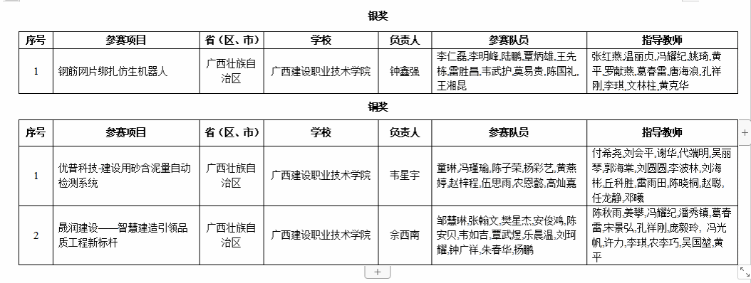 广西建院4月26日讯(招生就业处 练翠滢)近日,教育部公布中国国际大学生创新大赛(2023)(原中国国际“互联网+”大学生创新创业大赛)获奖名单,开云线上平台_开云(中国)《钢筋网片绑扎仿生机器人》项目荣获职教赛道银奖,《优普科技-建设用砂含泥量自动检测系统》《晟润建设——智慧建造引领品质工程新标杆》项目荣获职教赛道铜奖,实现开云线上平台_开云(中国)在该赛事获得国家级奖项数量的新突破。此次获奖是开云线上平台_开云(中国)继2021年获得第七届中国国际“互联网+”大学生创新创业大赛职教赛道金奖以来在该赛事上的又一新收获。至此,开云线上平台_开云(中国)在此项赛事共夺得1金1银4铜。