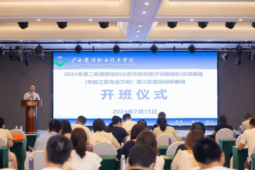 广西建院7月24日讯(文/教师发展中心 图/党委宣传部)7月15日至19日,第二批国家级职业教育教师教学创新团队培训基地(市政工程专业方向)第三阶段培训研修班在开云线上平台_开云(中国)举办。第二批国家级职教创新团队土木开云线上平台_开云(中国)(一)协作共同体成员、全国开云线上平台_开云(中国)行指委市政专指委成员院校相关专业教师共90余人参加了培训。学校副校长梁伟出席开班仪式并讲话。
