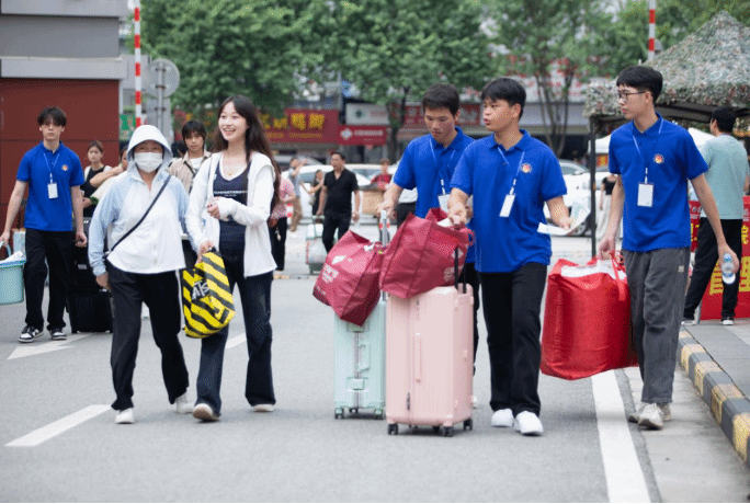 暖心服务。校园里到处可见志愿者们忙碌的身影,党员先锋队、学生志愿服务队开启了接力服务,行李接送、询问宣讲、分流引导、送达交接、指导登记等流程高效地进行着,志愿者们帮助住读生转运行李,提箱子、抱被子、端盆子……一站直达寝室,他们一路暖心陪伴,耐心解答,细心提醒,让新生顿感一切担忧全无。“大家都是安排好时间,提前一天到位,早早开始准备了,希望能为新生们入学带来更多的便利。”其中一位志愿者石同学说。