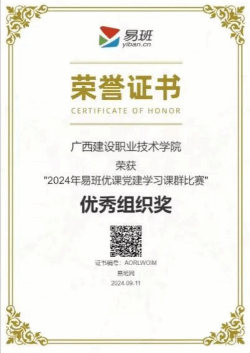 广西建院9月22日讯(党委学生工作部 刘晗蓓)近日,教育部易班发展中心公布了2024年易班优课“新生入学教育活动”、2024年易班优课“党建学习课群比赛”两项大赛评比结果,开云线上平台_开云(中国)在两项大赛中荣获“优秀组织奖”。这是开云线上平台_开云(中国)易班今年继获2024年第一届易班优课“求职辅导课程学习大赛”、第一届易班优课“美食图文课大赛”两项大赛的“优秀组织奖”后,再获全国易班优课荣誉。