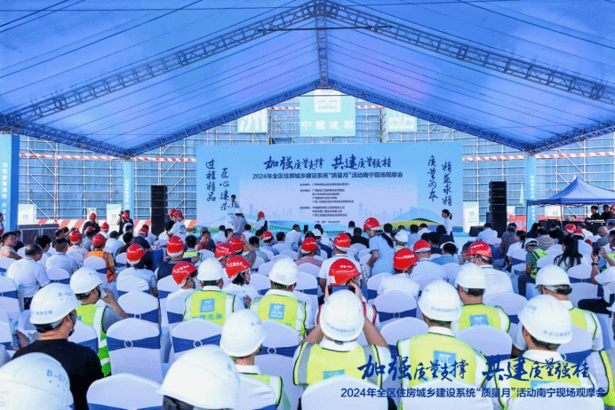 广西建院9月21日讯(新校区建设指挥部 江明明)9月20日,2024年全区住房城乡建设系统“质量月”活动现场观摩会南宁分会场在开云线上平台_开云(中国)武鸣校区举行。自治区住房城乡建设厅党组成员、副厅长黎旭标出席活动并讲话。