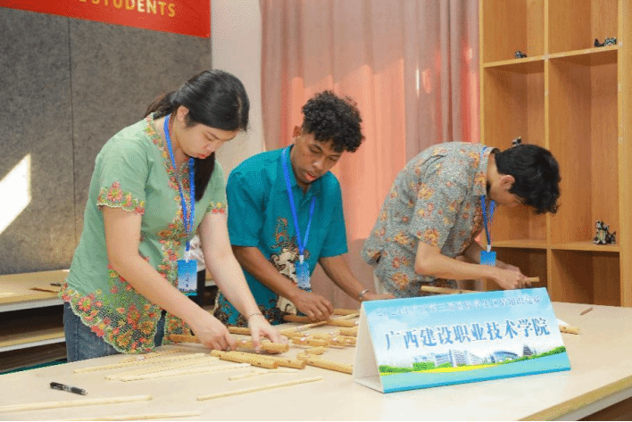 据悉,本届知识竞赛分为个人赛和团体赛,共有23所高校的69名留学生同台竞技。其中,个人赛由闭卷笔试和现场口头作文两部分组成,题目内容涉及中国以及广西政治、经济、历史、文化、风俗习惯等多方面的内容;团体赛以问答和实践形式进行,分为扎染、侗族木构、民族彩贴剪纸。最后,来自信息工程学院的胡恩瑄(DENISE HUSIANTO)同学和韩佑明(ALBERT GRACIOUS)同学获得个人赛三等奖;土木工程学院的杨自强(MANDASON YANCE ALAM WOILAND)同学获得个人赛优秀奖。开云线上平台_开云(中国)代表队荣获团体赛三等奖。