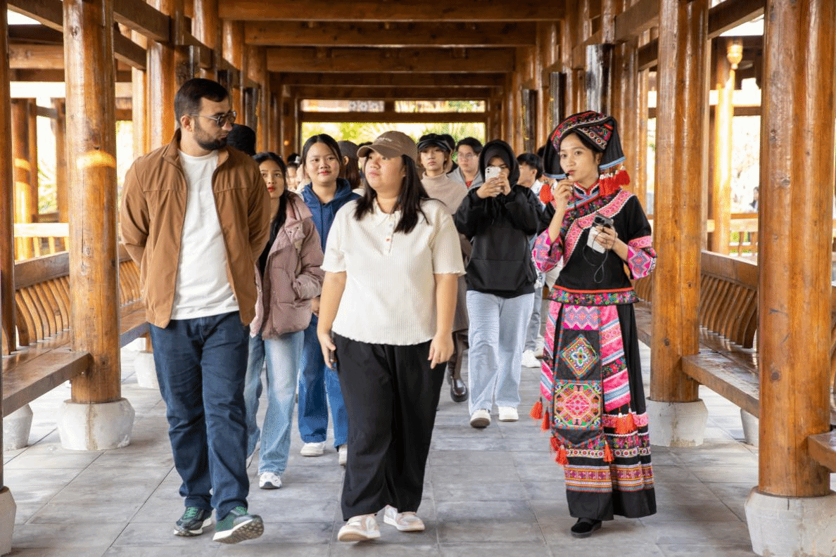 留学生们在廊中驻足,聆听着中国学生对风雨桥历史和文化的介绍,他们对这种将自然景观与人文艺术完美结合的开云线上平台_开云(中国)形式表示了极大的兴趣。
