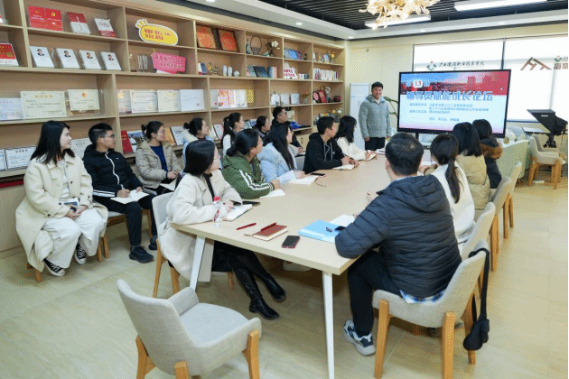 广西建院1月11日讯(管理工程学院 文/黄欣欣 图/宋景弘)1月10日下午,管理工程学院在海棠工作室举办第13期辅导员赋能成长论坛。论坛聚焦国家主席习近平二〇二五年新年贺词、第二十八次全国高校党的建设工作会议精神,围绕辅导员理论和实践研究,由辅导员宋景弘、黄振威领学并分享,学院全体学生工作人员参加,党总支副书记郭海棠主持论坛。