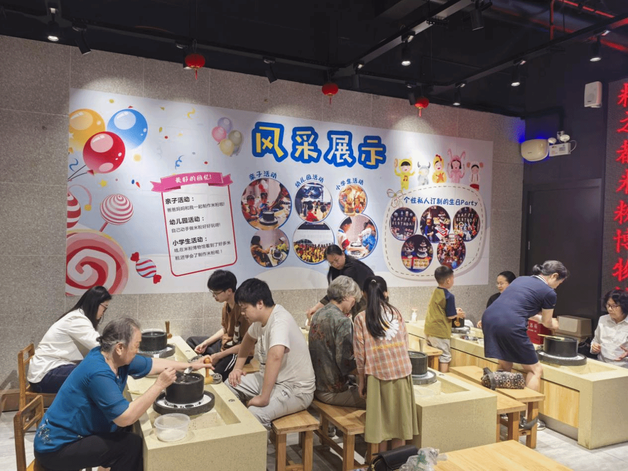 活动现场,广西米粉博物馆讲解员讲述了广西米粉的历史渊源与文化内涵,带大家穿越时光,领略广西米粉的千年独特魅力。随后,大家开始体验手工米粉制作,选米、浸泡、磨浆、沉淀、蒸制、添加馅料、卷制、切割……从精选食材的窍门到熬制火候的拿捏,讲解员深入浅出地为大家揭晓美味背后的秘密。