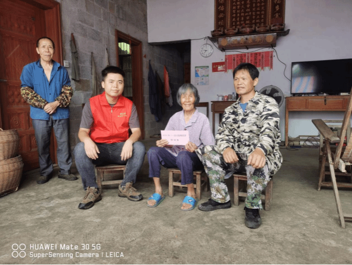 莫浩(左一)入户慰问困难老党员