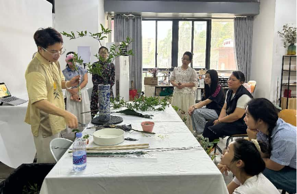 花艺全国技术能手陆振鑫指导中国传统插花培训现场