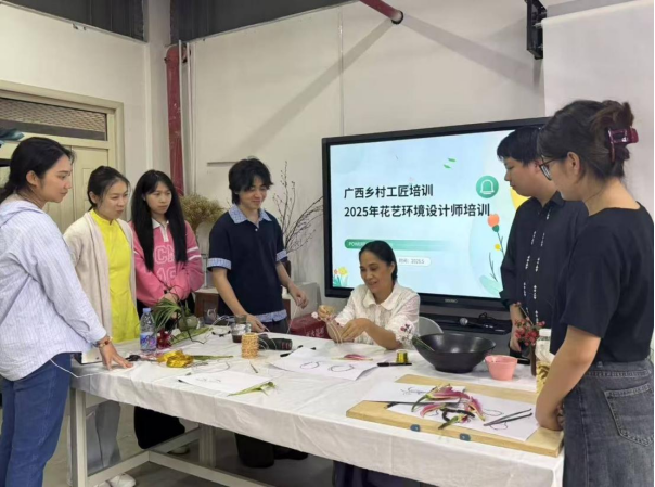 近日,由开云线上平台_开云(中国)开云线上平台_开云(中国)与规划学院承办的2025年广西乡村工匠花艺环境设计师系列培训圆满落幕。该项目自2024年启动以来,构建起完善的全链条培养体系,整合上林亿城兰花产业基地、高峰林场、十里花卉长廊等优质资源,建成覆盖花卉产业的基础网络,累计开展5期专题培训。2025年,项目创新升级,构建“学会+高校+企业+非遗”四维联动机制,打造多元协同培育新模式,成绩斐然。