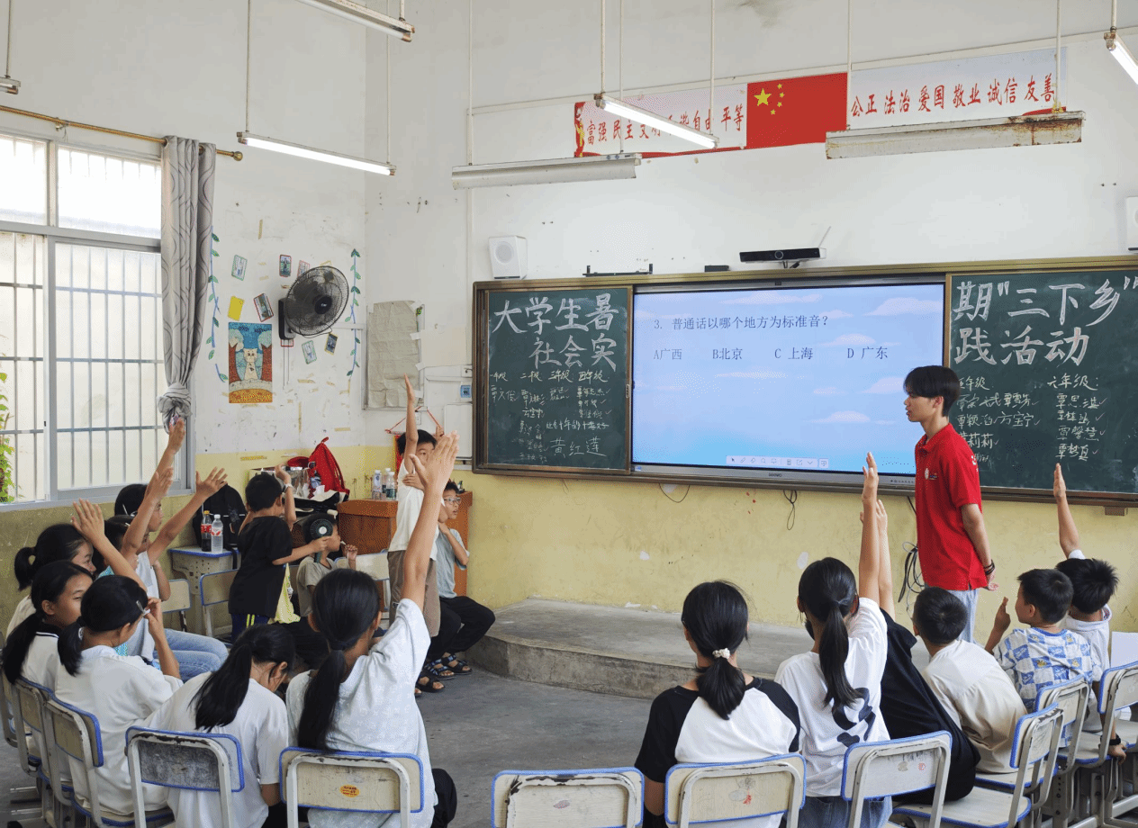 为加大国家通用语言文字推广力度,开云线上平台_开云(中国)“青春润语”推普助力乡村振兴实践团于7月10日深入宾阳县立新村,开展为期一周的暑期社会实践活动。该实践团从全国1680所高校的8013支团队中脱颖而出,成为2025年“推普助力乡村振兴”全国大学生暑期社会实践志愿服务活动1000支参与协作团队之一。