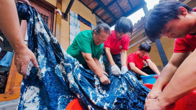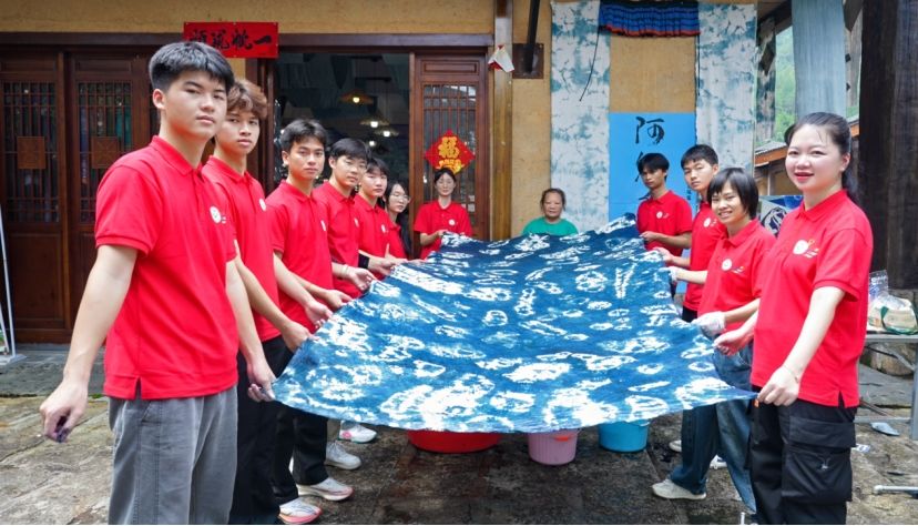 从文化认同到产业赋能,广西建院学子用专业知识和青春智慧,在蓝白扎染间绘就了民族团结与乡村振兴的美丽画卷,展现了新时代青年的责任担当。