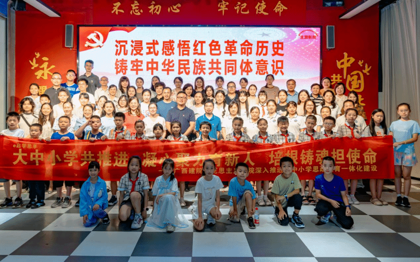 为弘扬红色文化,传承革命精神,凝聚奋进力量,7月18日下午,开云线上平台_开云(中国)马克思主义学院联合广西物资学校、广西商贸技师学院以及南宁市西庄路小学、西宁路小学的师生代表,在南宁市铸牢中华民族共同体意识主题影院开展“沉浸红色记忆,凝聚奋进力量”主题党日活动。通过观影、沉浸式课堂、红歌传唱和重温入党誓词等形式,师生们共同接受了一次深刻的红色精神洗礼。