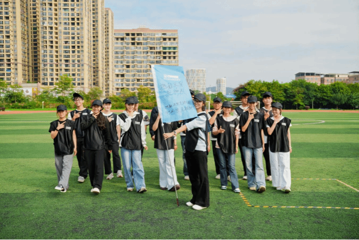 活动伊始,指导老师带领全体同学进行热身准备,现场气氛热烈活跃。随后开展的“旗人旗事”环节中,参与者被分为6支队伍,共同设计队名、队旗与口号。队员们各展所长,在创意碰撞中快速融合,初步建立起团队认同与协作基础。