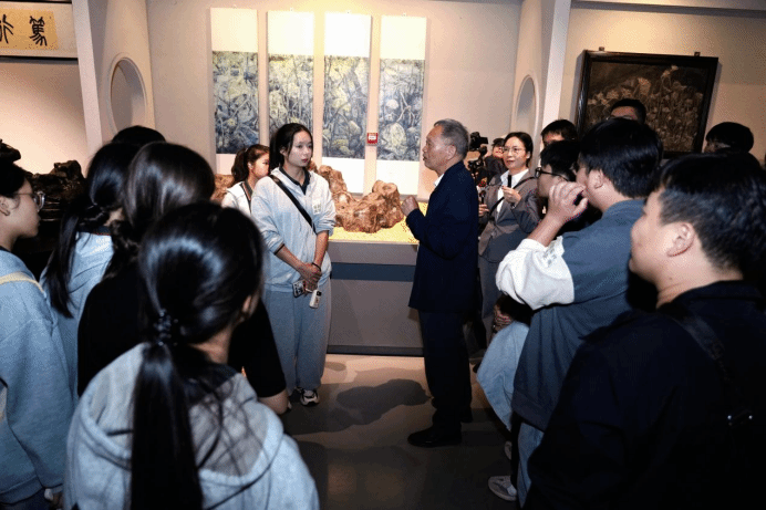 张世良老先生(原柳州市园林局总工程师,柳州市“专业技术拔尖人才”)在柳州奇石馆为学员介绍奇石知识