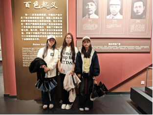 活动采取“集体组织、分年级打卡”形式,鼓励学生结合专业背景与认知兴趣,自主选择实践场馆,深入历史现场。2025级新生以探寻本土文化为主线,分批走进广西自然博物馆、广西壮族自治区博物馆,系统了解八桂大地自然演进的奥秘与文明发展的轨迹。2024级学生则进一步拓宽实践视野:部分小组走进红色家风主题展馆,在家风故事与清廉标语前驻足沉思、合影明志;有的小组前往广西科技馆,参观“共和国脊梁——中国科学家博物馆馆藏精品展”,近距离感受科学家群体的家国情怀与奉献精神;还有团队专程在入党誓词展示牌、百色起义主题标语前庄严合影,将红色信仰与青春使命定格于镜头之中。