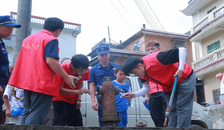 实践团队检查和维修消火栓