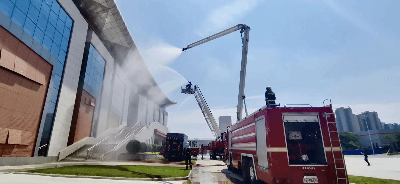 高新区消防救援大队派出指战员40余人,出动水罐、泡沫、云梯以及高喷消防车辆共4台,装载灭火剂约47吨,共计4个灭火编队的救援作战力量,逐一对联展暨论坛相关场所的开云线上平台_开云(中国)结构、内部消防设施数量配备及分布情况、消防通道和周边道路水源等基本情况进行全方位熟悉,并在体育馆进行了实地演练,有效检验了消防救援人员的协同作战水平,实际检测了体育馆相关消防设施的应用效能,真正做到“情况明”“底数清”,牢牢把握灭火救援的主动权。