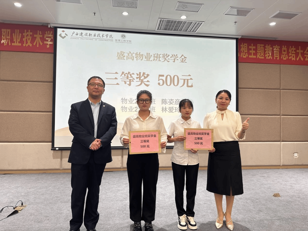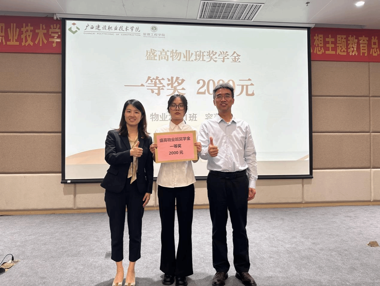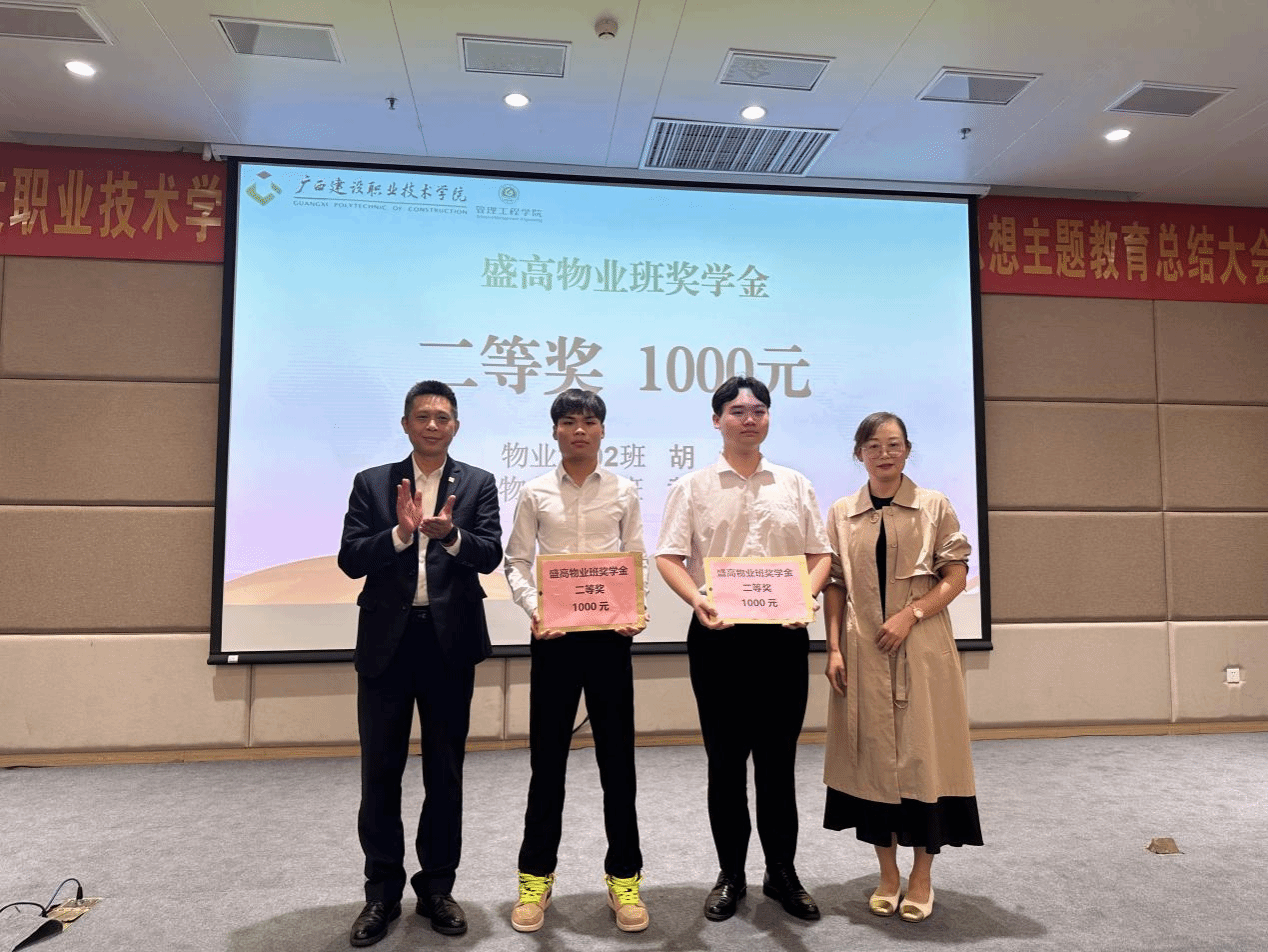 盛高物业南宁城市中心徐敏智总经理和罗辉副院长为学生颁奖