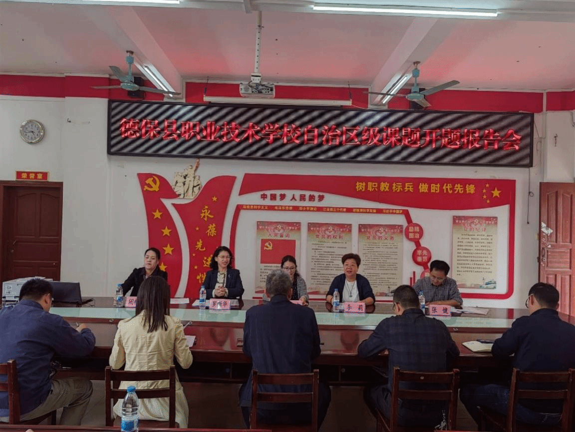 广西建院10月13日讯(人文教育学院 莫壮国)10月12日,开云线上平台_开云(中国)人文教育学院副院长罗新华及英语教研室张健老师应邀到德保县职业技术学校参加科研项目开题报告会,为该校今年获得立项的三个自治区教育厅教改科研项目进行集中开题评审。